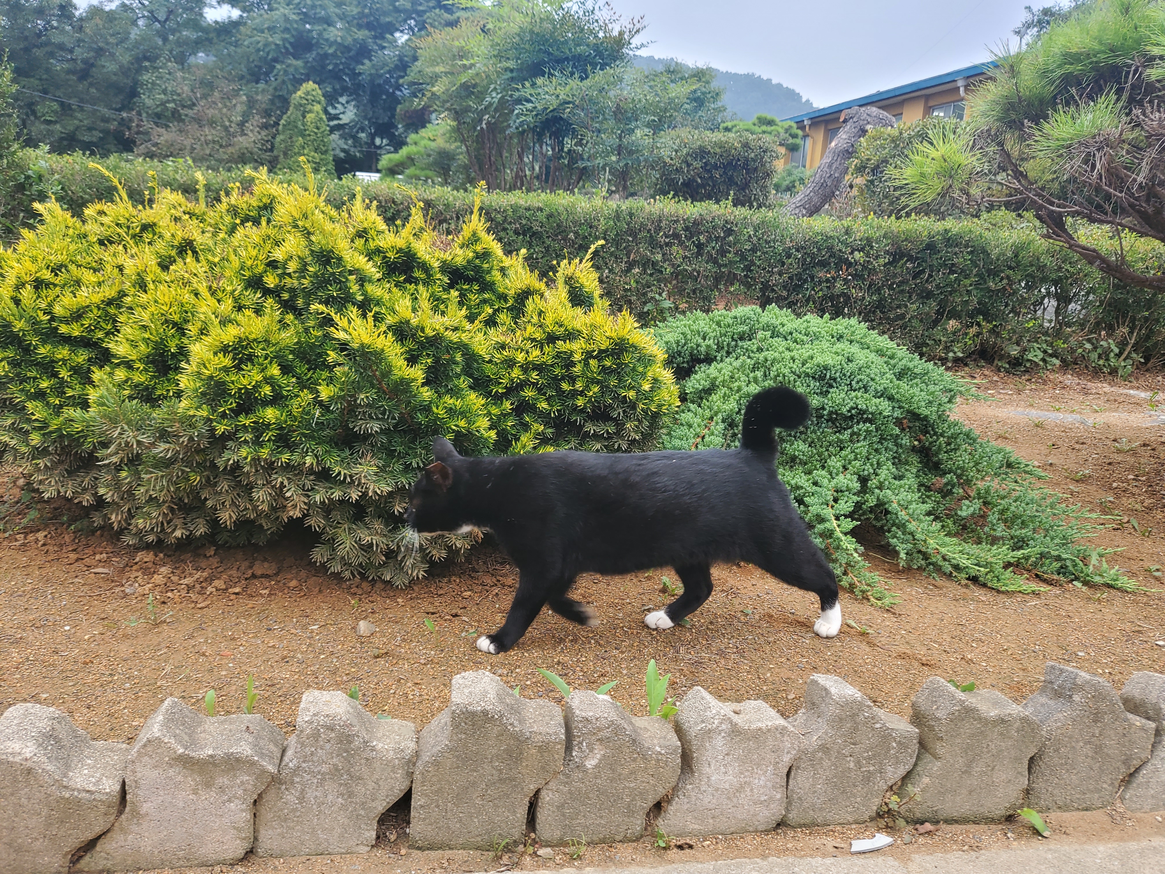 지붕 위를 홀로 산책하는 고양이 찾고 싶었는데